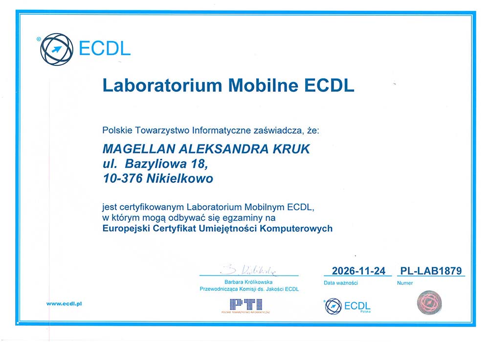 Nasza mobilna pracownia komputerowa przeszła audyt techniczny PTI. Gwarantujemy sprzęt i oprogramowanie spełniające surowe wymogi egzaminacyjne w każdej lokalizacji.